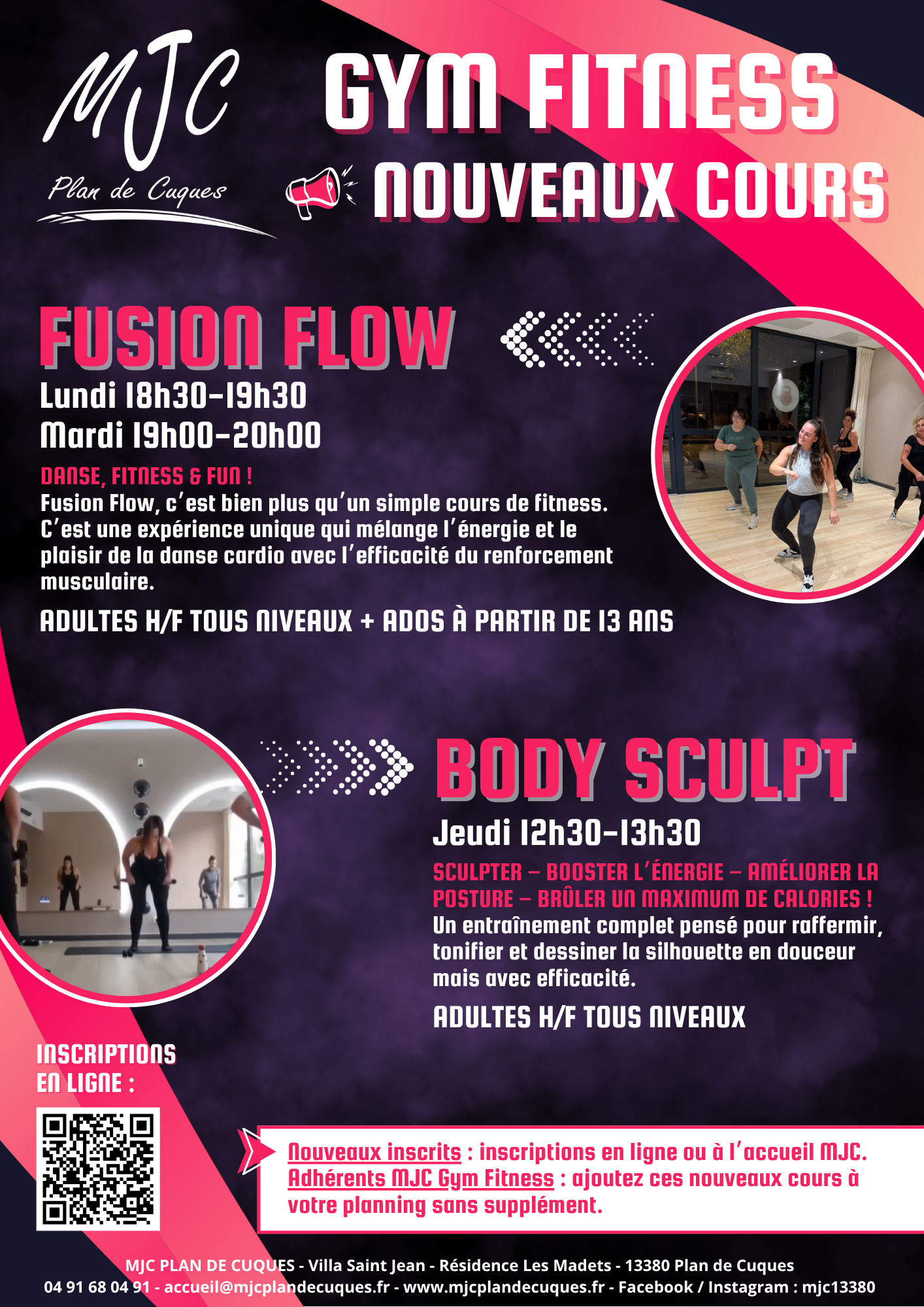 Nous avons le plaisir de lancer des nouveaux cours de Gym Fitness : Fusion Flow et Body Sculpt !
