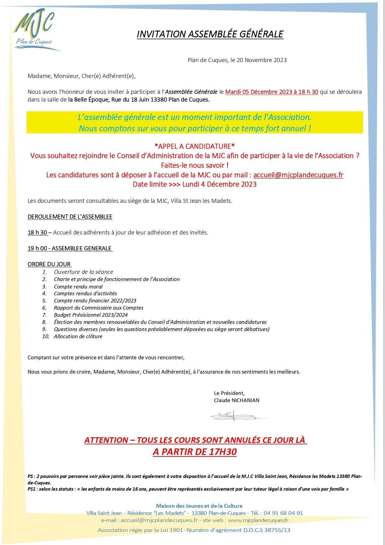 Assemblée Générale de la MJC
